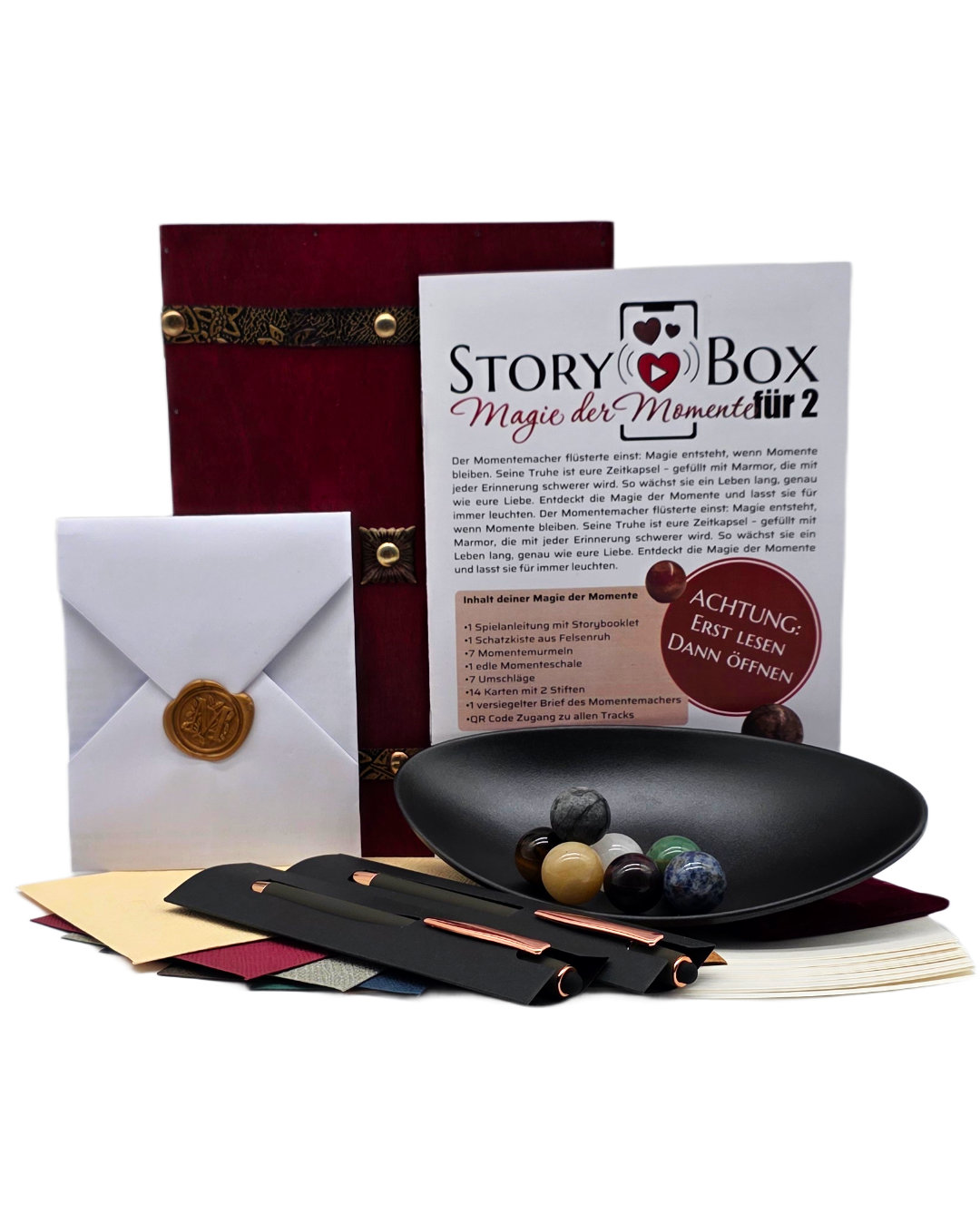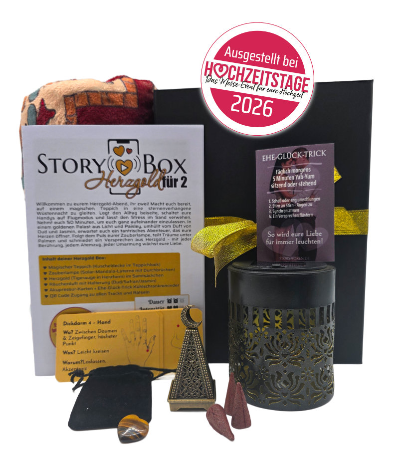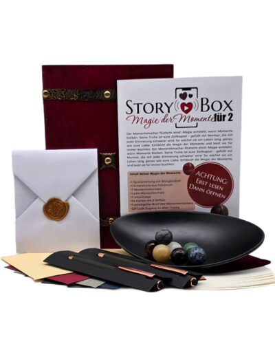 Unsere Story-Boxen sind mehr als nur ein Geschenk – sie sind ein romantisches Abenteuer für euch als Paar. Verbringt einen Abend zu zweit und erlebt mit jeder Box eine andere gemeinsame Aktivität wie GuaSha-Massage, Liebesbrief finden und schreiben, Akupressureinstieg oder das Befüllen einer Zeitkapsel.