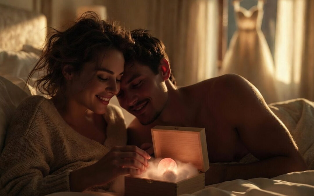 Viele von euch schlafen getrennt, und genau das macht diesen Abend so besonders. Ihr liegt in euren Zimmern, das Herz klopft, morgen ist der große Tag. Schickt euch (oder überreicht euch persönlich) das kleine Set mit den Worten: „Das ist für morgen… und für alle Tage danach.“ Das macht es ganz besonders geheimnisvoll. Schickt eurem Schatz nur die gravierte Box mit der Murmel und einen Brief mit ein paar persönlichen Worten der Vorfreude auf das Ritual, das ihr gemeinsam in den nächsten Tagen machen werdet. Kein Druck, nur diese süße, kribbelnde Vorfreude und ein warmes Gefühl, das euch in den Schlaf begleitet. Viele Paare sagen hinterher: „Das war der Moment, in dem wir gemerkt haben: Wir sind bereit.“