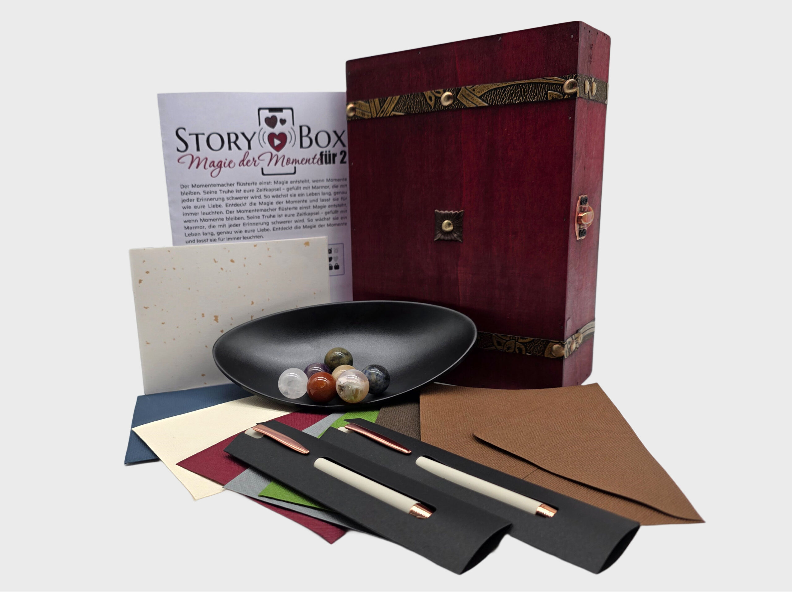 Sie vergaßen nie. Heute, viele hundert Jahre später, öffnet sich seine letzte Truhe – nur für euch beide. Magie der Momente ist die erste und wichtigste Storybox. Sie ist der Anfang eurer ganz persönlichen, wachsenden Liebes-Zeitkapsel.